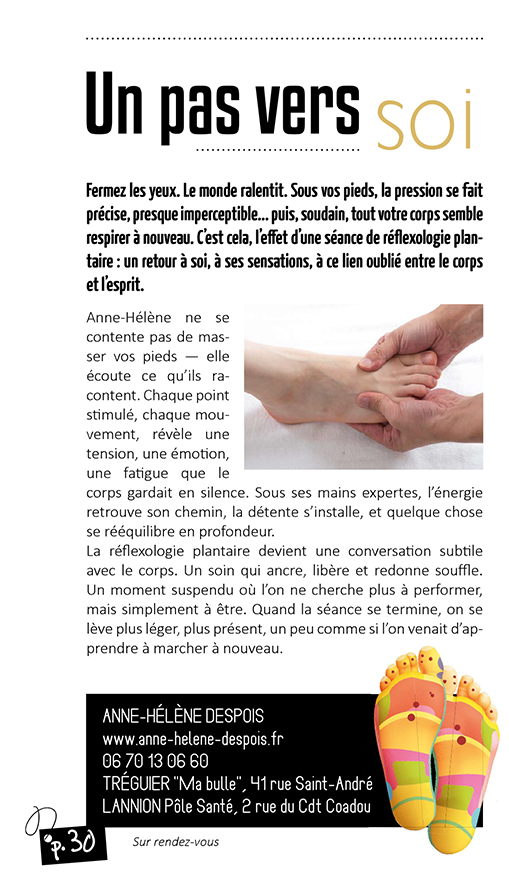 Le soin des pieds est pour moi une forme de méditation qui rend chaque personne massée unique et précieuse.